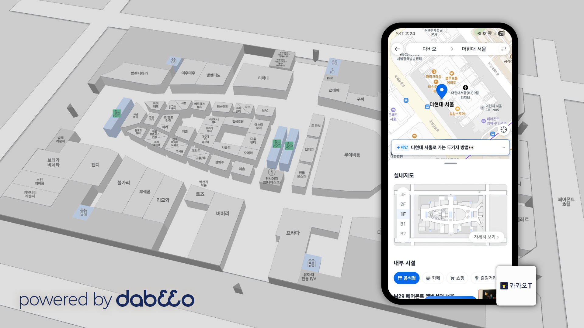 With this integration, KakaoT users can now see detailed floor layouts and store information inside their destination, along with the app’s search and route guidance functions. Visitors to large-scale complexes such as department stores and shopping malls can check precise indoor locations directly within the app, enabling a seamless navigation experience from arrival to moving around inside the venue.
