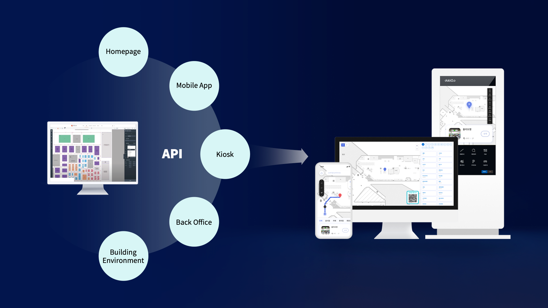 Save time on booth layout and modifications. With Dabeeo STUDIO you can quickly and easily create and modify booth layouts. In particular, modified data can be uniformly managed with a single save using Dabeeo's API to websites, mobile devices, kiosks.